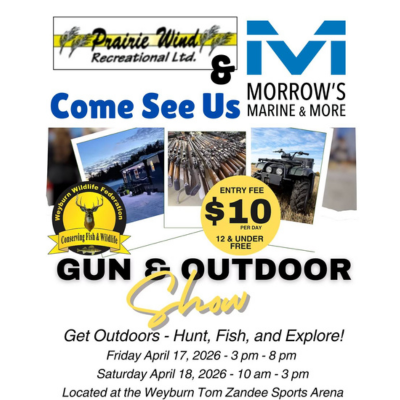 Get outdoors - Hunt, Fish, and Explore! Friday April 17, 2026: 3:00-8:00pm Saturday April 18, 2026: 10:00am-3:00pm